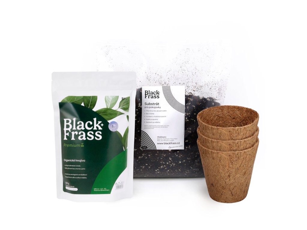 Chceš, aby se tvé pokojovky měly skvěle hned od začátku? Startovací balíček ti s tím pomůže. Obsahuje všechno, co rostliny potřebují pro zdravý růst – 500 g organického hnojiva Black Frass Premium, 3 l výživného substrátu pro pokojovky bez rašeliny a 3 kokosové květináče z přírodních vláken.